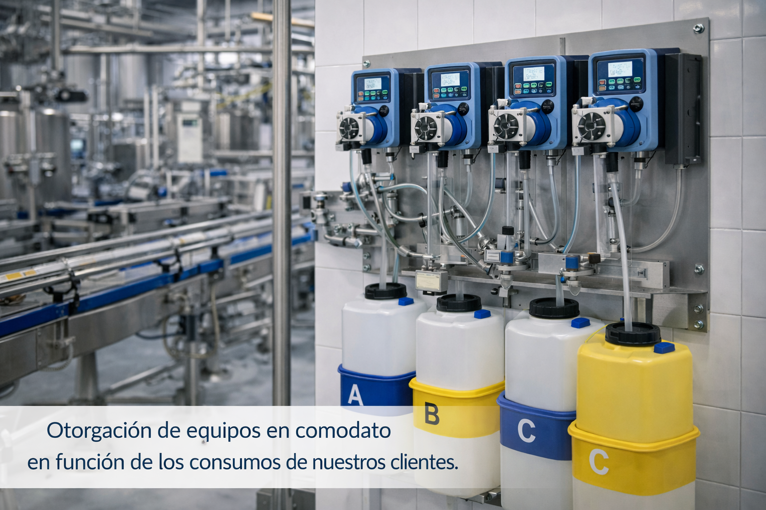 Nuestros equipos en comodato garantizan una dosificación precisa, reducen el error humano, permiten trazabilidad del consumo de químicos y optimizan los costos operativos sin inversión inicial en equipos.